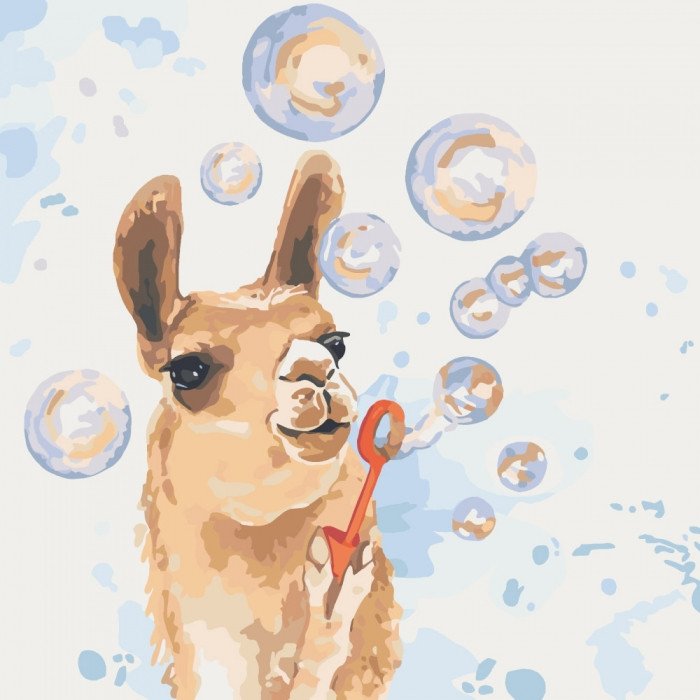 Картина по номерам Погрузись в детство Лама с мыльными пузырями Идейка 40*40 см